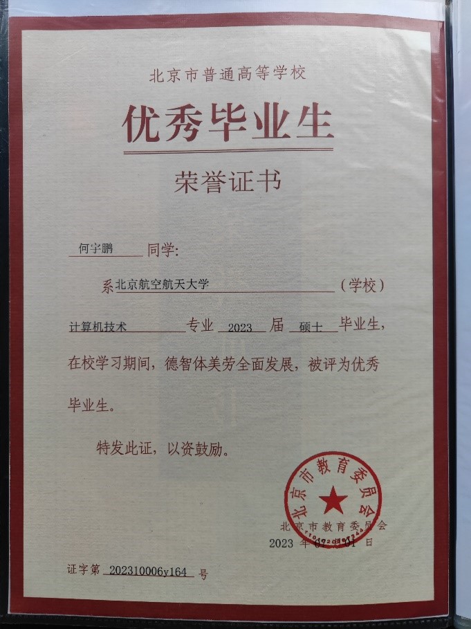 近日,北京欧美大片ppt免费大全公布了2023届优秀毕业生名单,实验室何宇鹏同学获评北京市优秀毕业生,杜烨、郭谢帆、刘晟、秦冉、周环宇和周嘉琪同学获评北京欧美大片ppt免费大全优秀毕业生。祝贺这些同学!